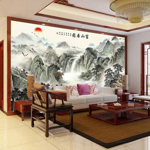 国画富春山居图山水画客厅办公室装饰墙画风水画靠山图卷轴名字画 虎窝淘